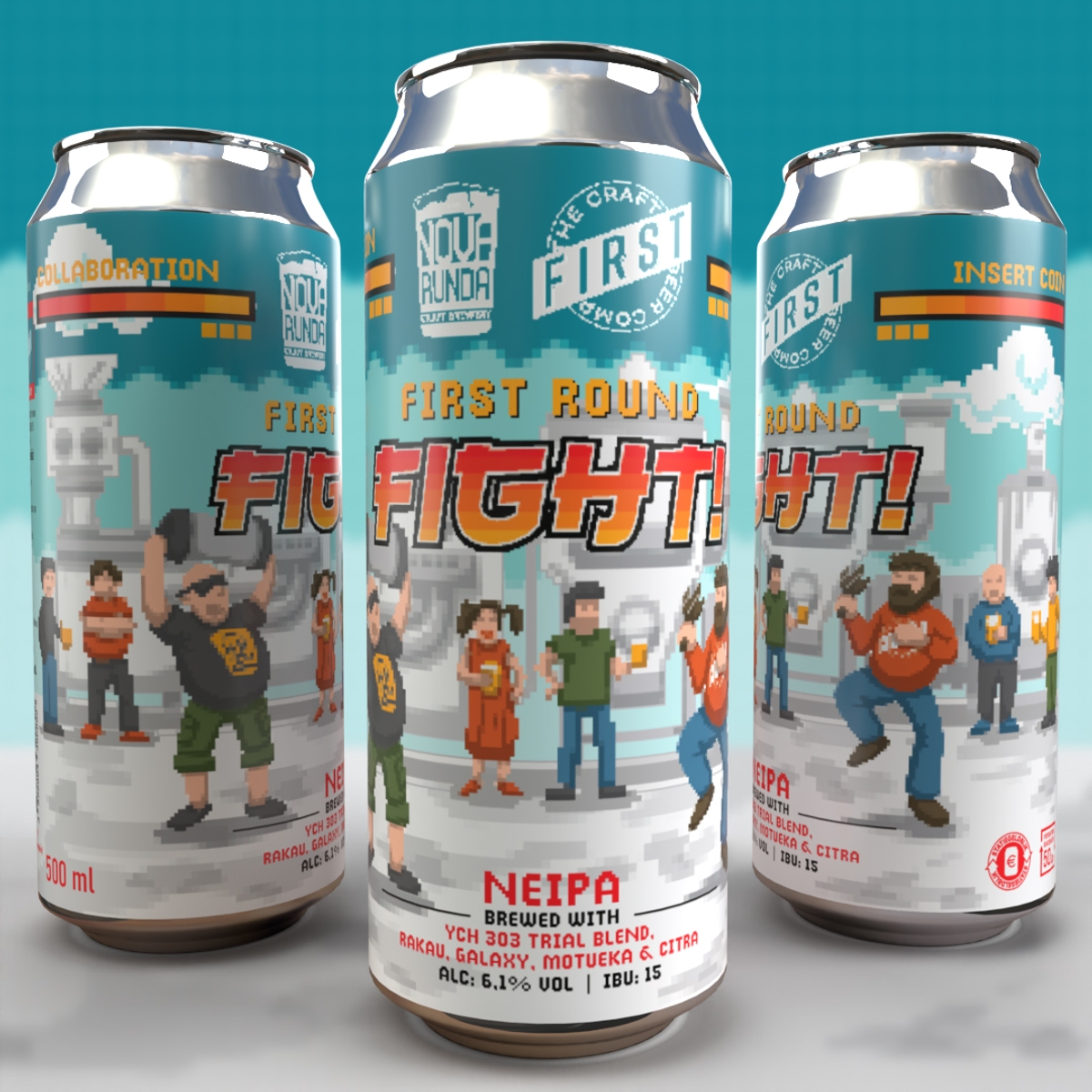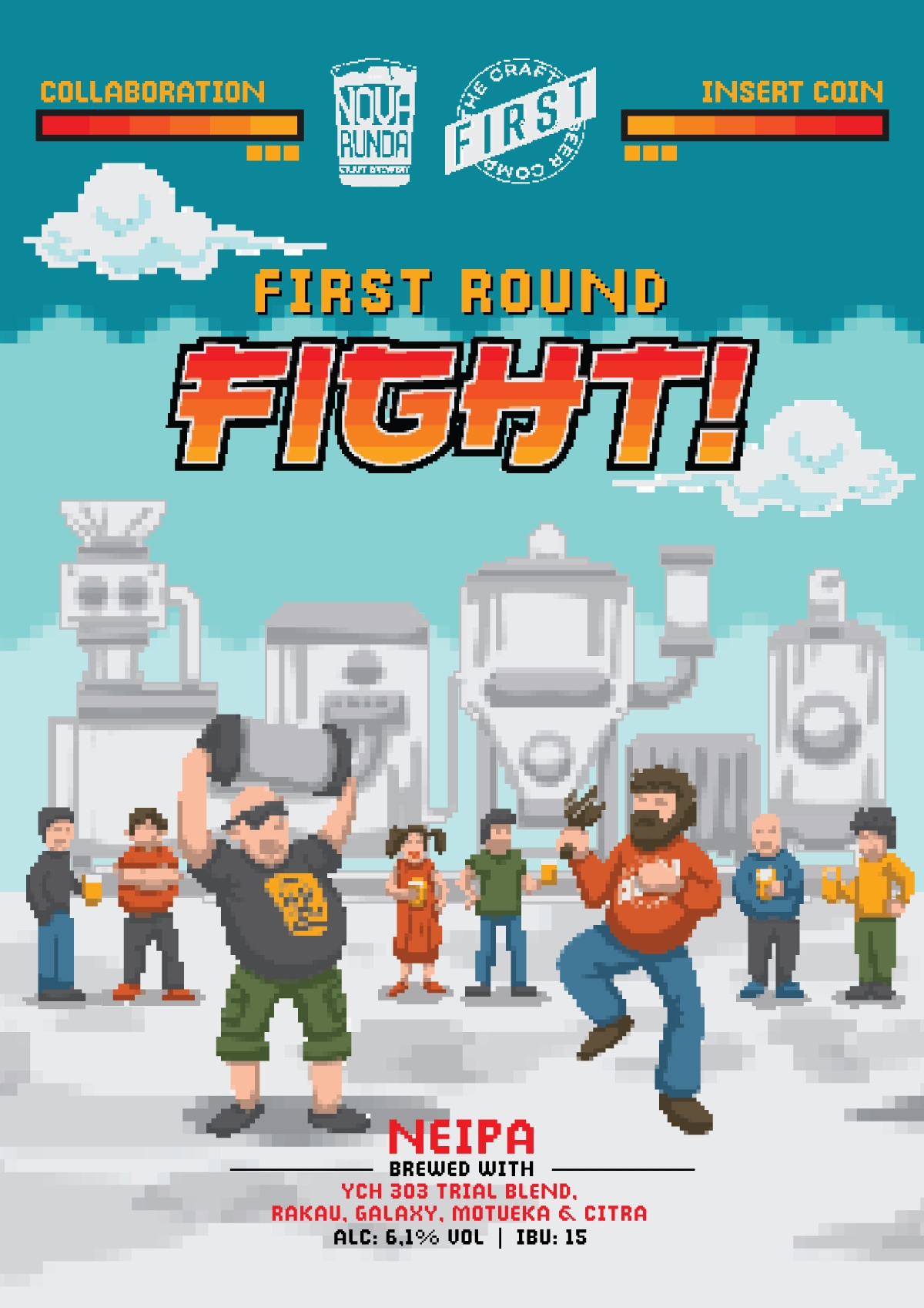 Prvi kolab s ekipom iz Budimpešte - FIRST Craft Beer. Čistom logikom smo spojili imena: njihov "First" i naš "Runda" pa smo dobili First Round! Kako je svaka kolaboracija između pivovara prijateljski meč, pivo je nazvano Fight! – kao u onim starim arkadnim borilačkim igricama na komodorcu.