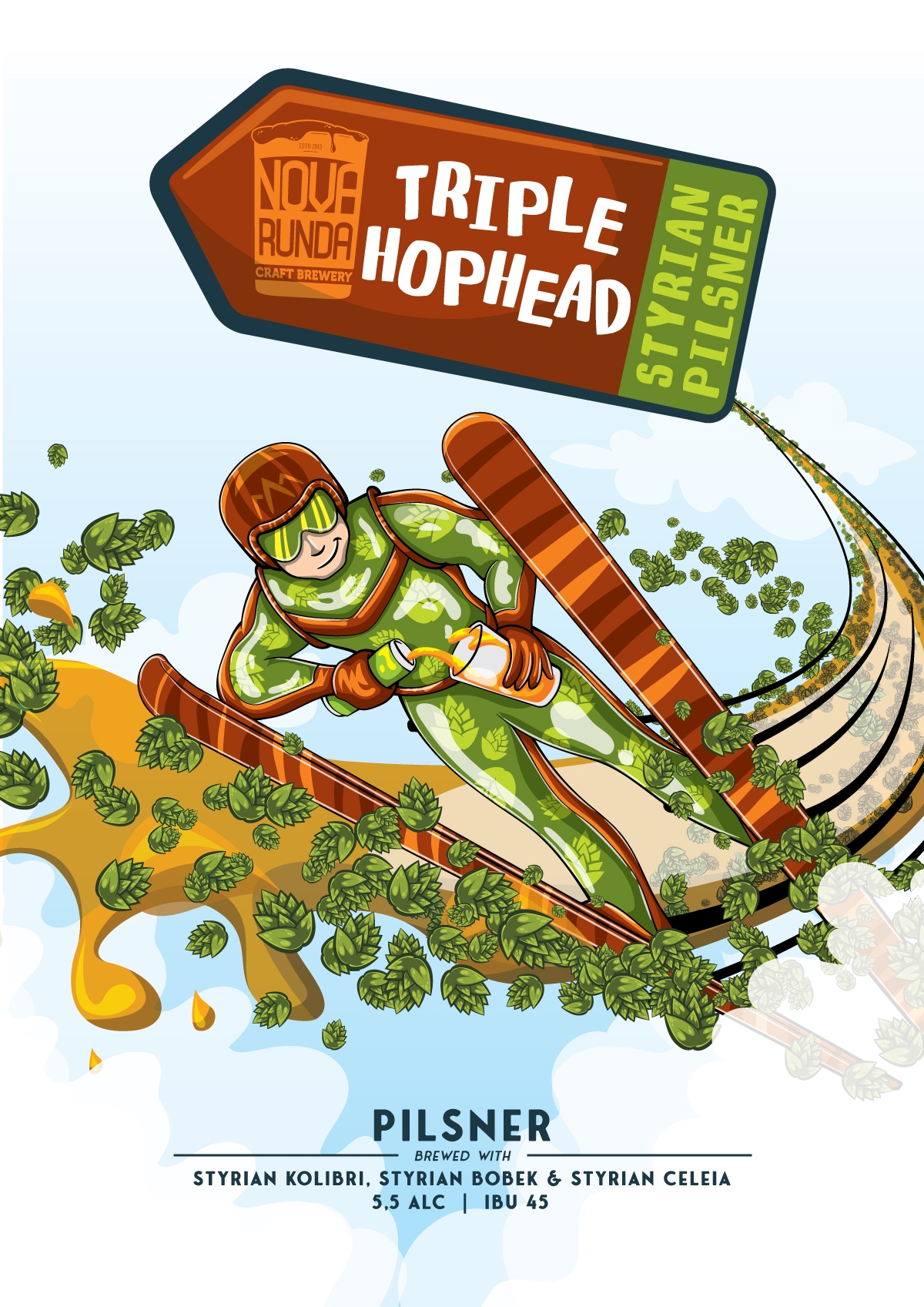 Samo Kolibri, Bobek i Celeia hmeljevi su u ovom Pilsneru što čini onaj "Slovenski" dio u pivskom stilu. Stvoren za sve fanove originalnih Pilsnera s malim zaokretom, ali i za sve fanove skijaških skokova što može potvrditi drug Primož na etiketi letom preko Triglava.
